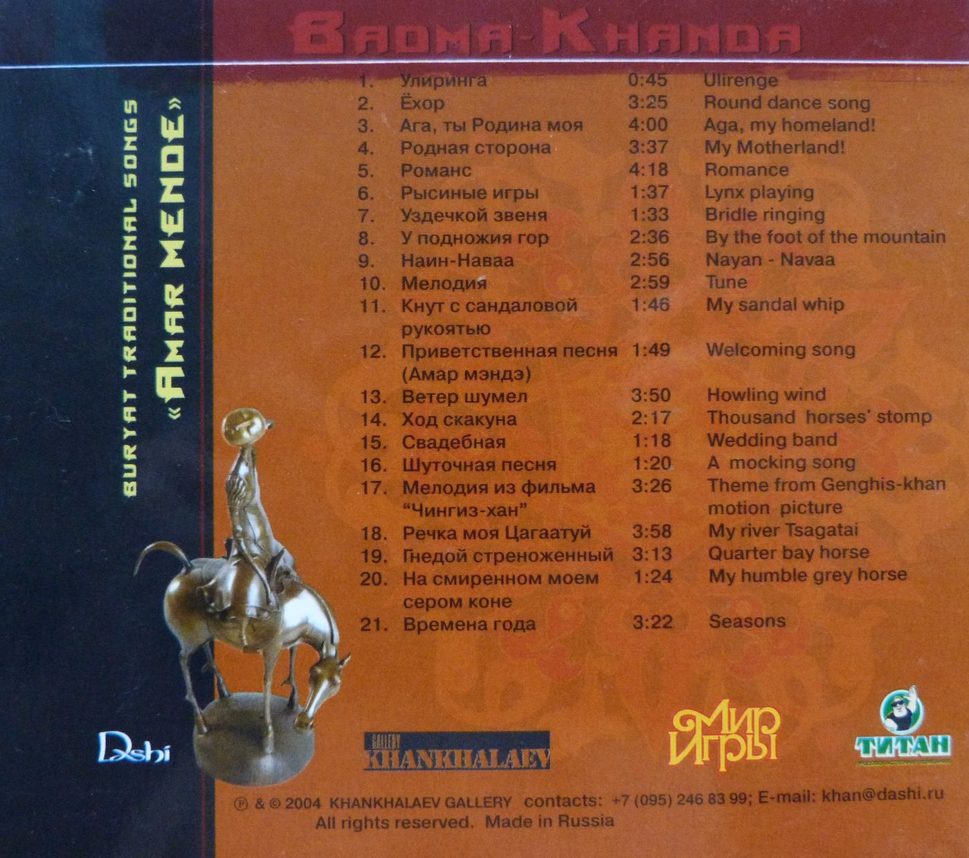 Список участников: Бадма Ханда — вокал Баттувшин Балданцэрэн — лимба, горловое пение Дмитрий Аюров — морин-хуур Кермен Каляева — иочин Валентина Намдыкова — ятаг